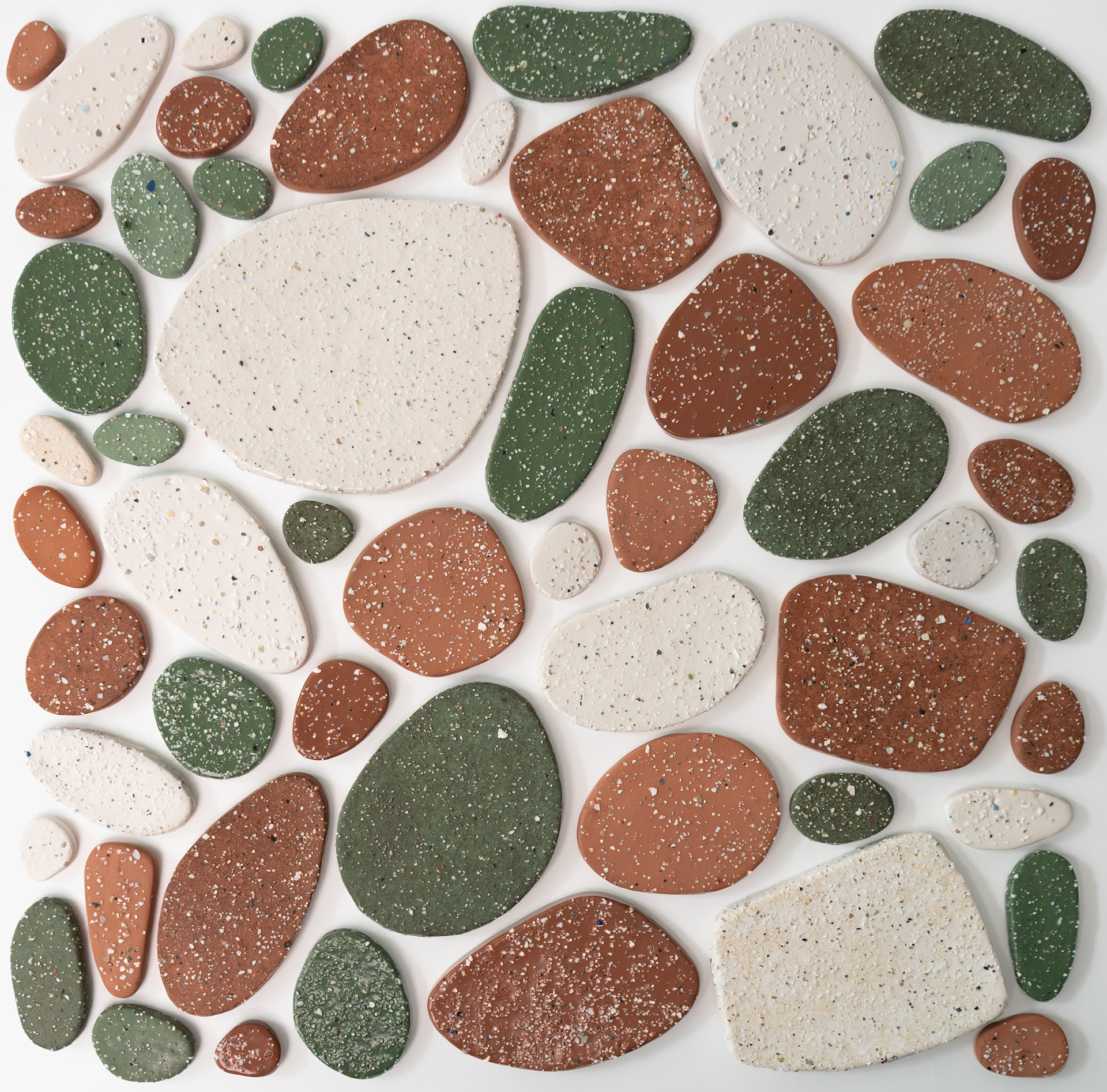 Gravels is a tile-based work that echoes the forms, textures, and arrangements of stones encountered in nature.